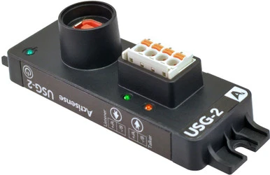 The high quality, shielded USB lead included with the USG-2 makes connection to a PC simple while providing a high level of water protection when connected to the custom designed USB socket. The pluggable screwless connector makes installation quick and easy, and the specifically designed DIN rail mount option ensures a reliable secure bulkhead mount for the USG-2.Multiple LEDs make diagnosing connection issues quick and easy. The blue power LED Illuminates solid blue when the USB driver has successfully loaded and the USG-2 is powered, while a green (receive) LED and an orange (transmit) LED indicate whether data is present.