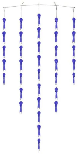 The Fish Razr 36in Phat Squid Spreader Bar is the perfect spreader bar for tuna and most all pelagic fish. Constructed with a 36″ heavy duty braced spreader bar with 5 drops. Each drop has plenty of phat squid ready to ride across the surface and bring the fish in. Boasting an incredible 34 Phat squids, consisting of 5 per drop on outside, 7 per drop on the inside and 10 squids down the center. The center drop is 5 foot long and has a swivel for attaching a lure.
